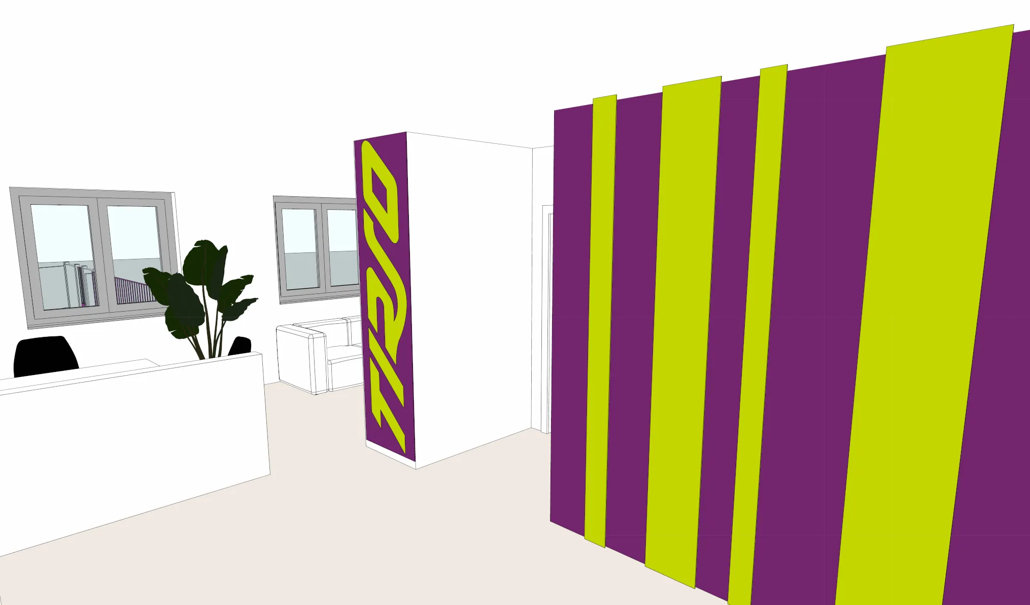 L'obiettivo è stato dare continuità tra la nuova grafica aziendale e gli spazi fisici di lavoro.
